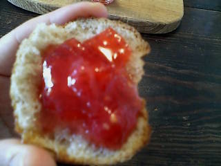 では、ジャムたんまり乗せていただきます。 ぱくっ。