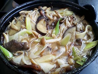 天然キノコがいっぱい! 焼いたネギとナスもいっぱい!