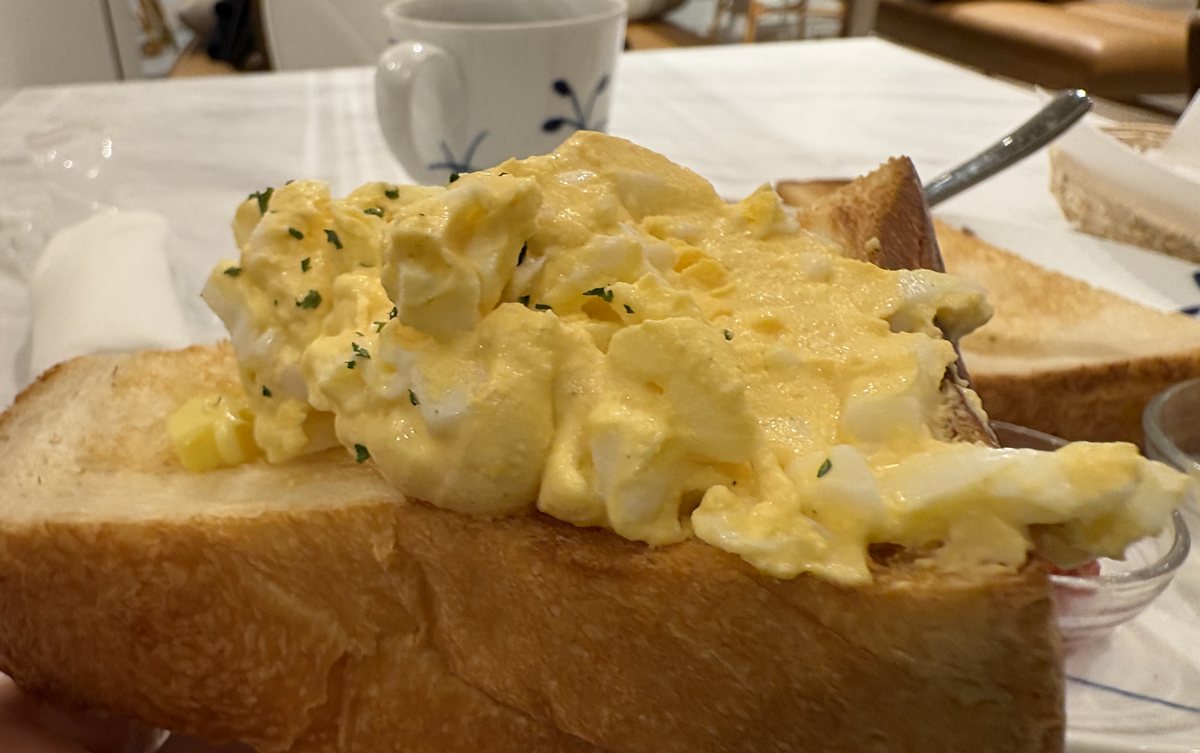 卵×バターで1カット、デザート的にいちごジャムで1カットかな。