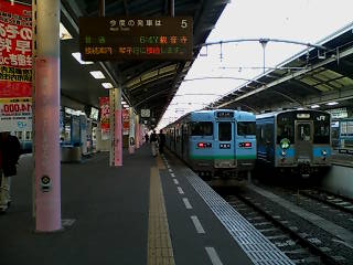 早起きしてJR高松駅で琴平方面行きの電車を待つ私。