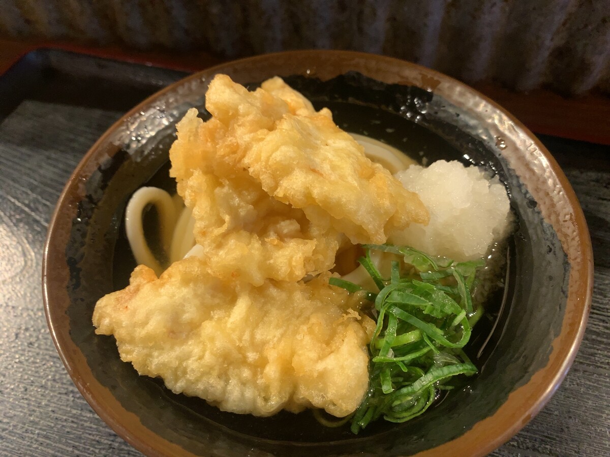 冷しうどん、かしわ天、大根おろし、おネギ、柑橘類、私の好きなものゴレンジャー。