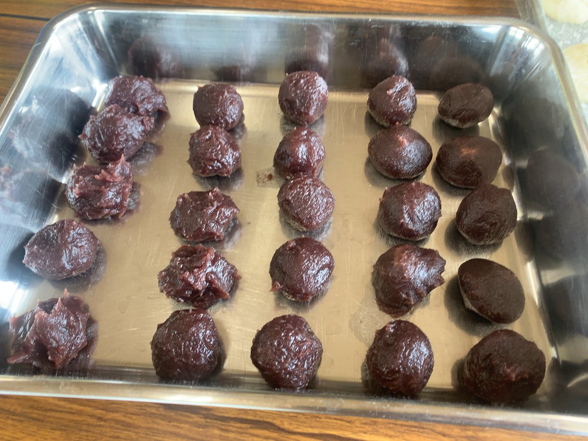 (4)あんこを1個30gに丸める。