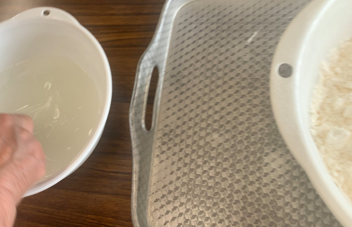 (2)ボウルに砂糖と水を混ぜておき、