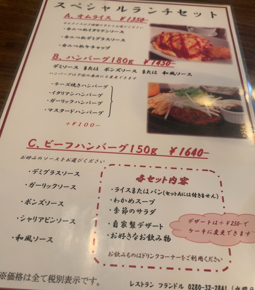 ハンバーグレストランの「フランドル」さんが、いつもいつも、いーつーもー