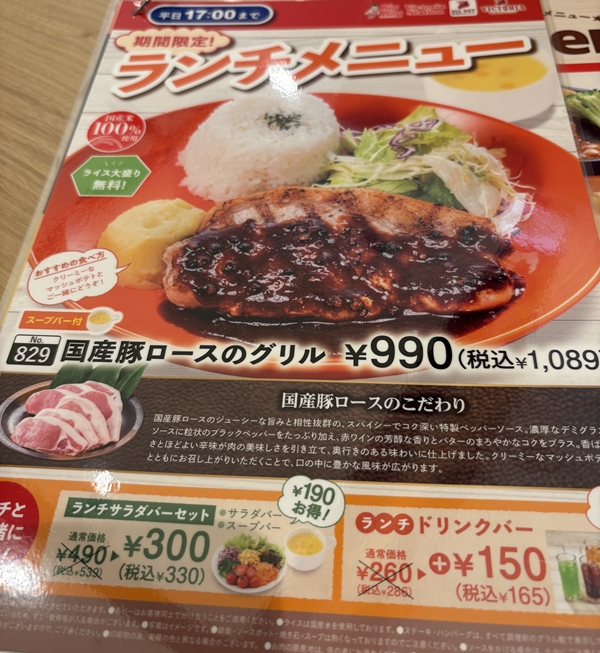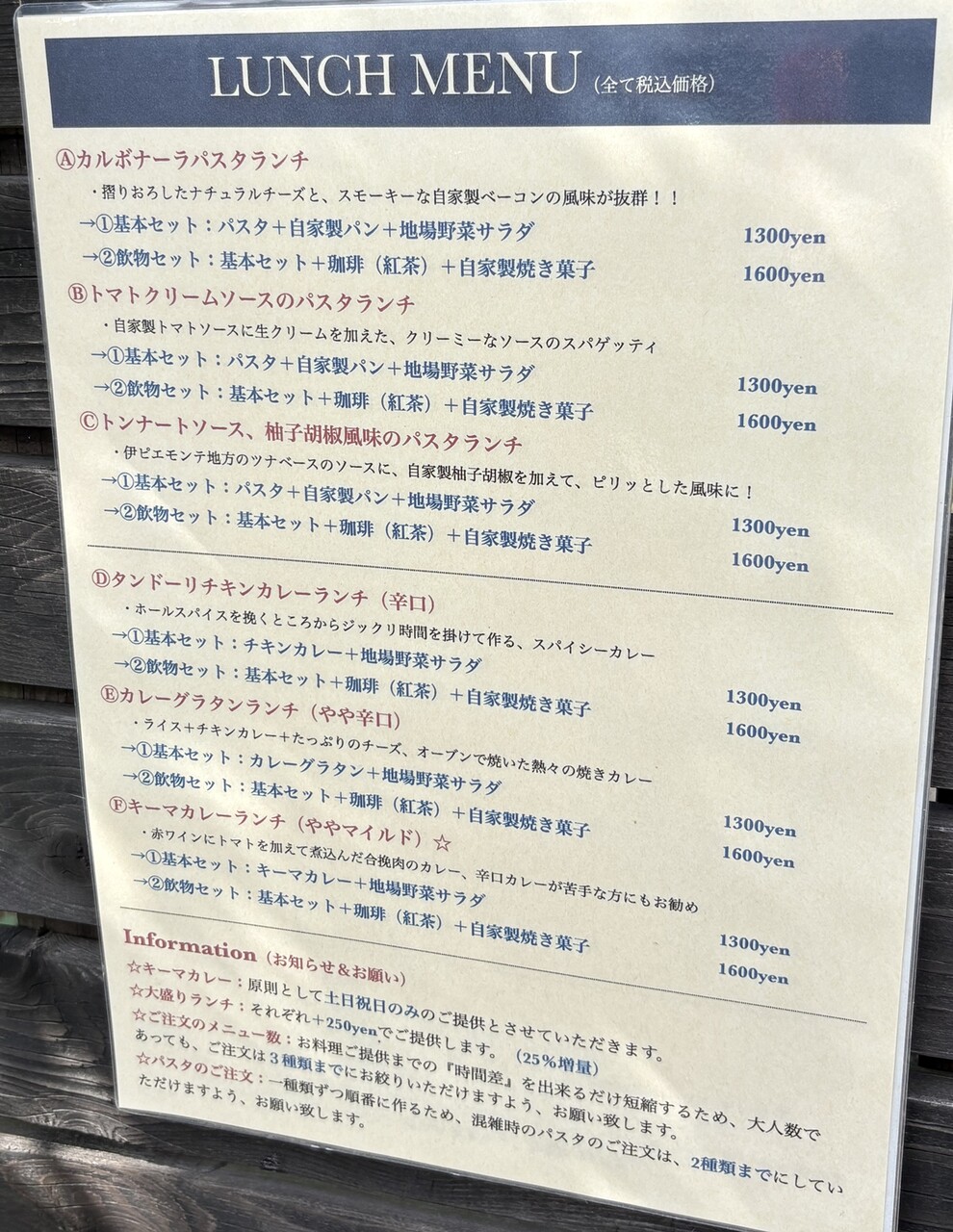 前回はグラタンを食べた気がするので、今回も食べたかったけど初志貫徹。