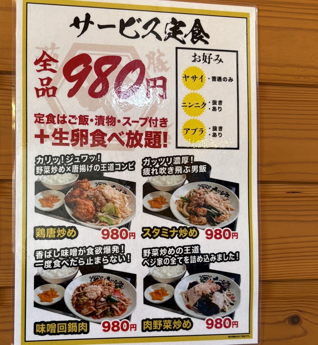 夫は4の「スタミナ炒め」。