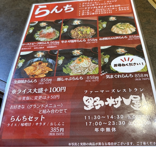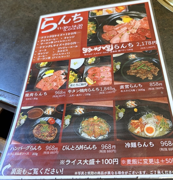 既に焼いてあるランチというと、ハンバーグか直営…。