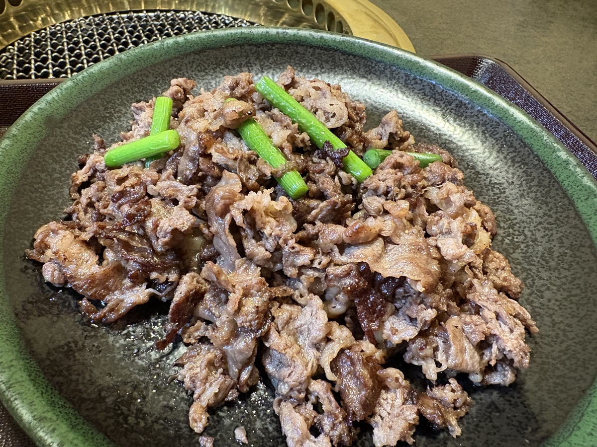 大皿を埋め尽くす牛肉の薄切り焼き。
