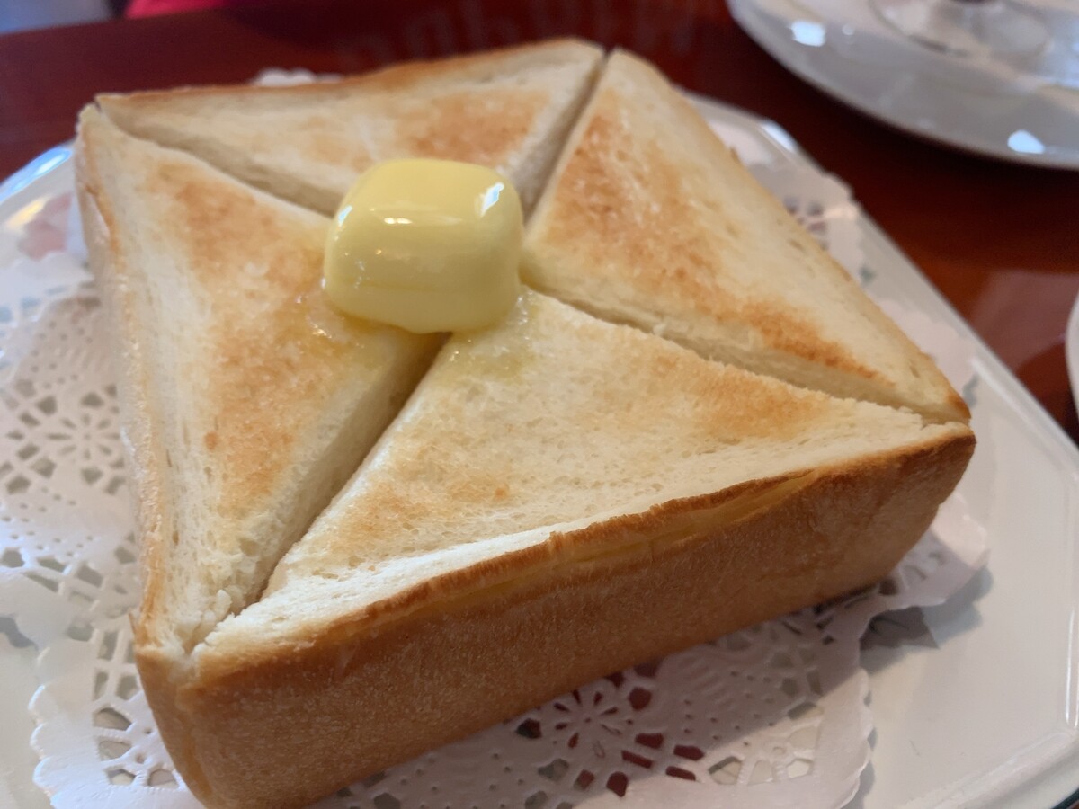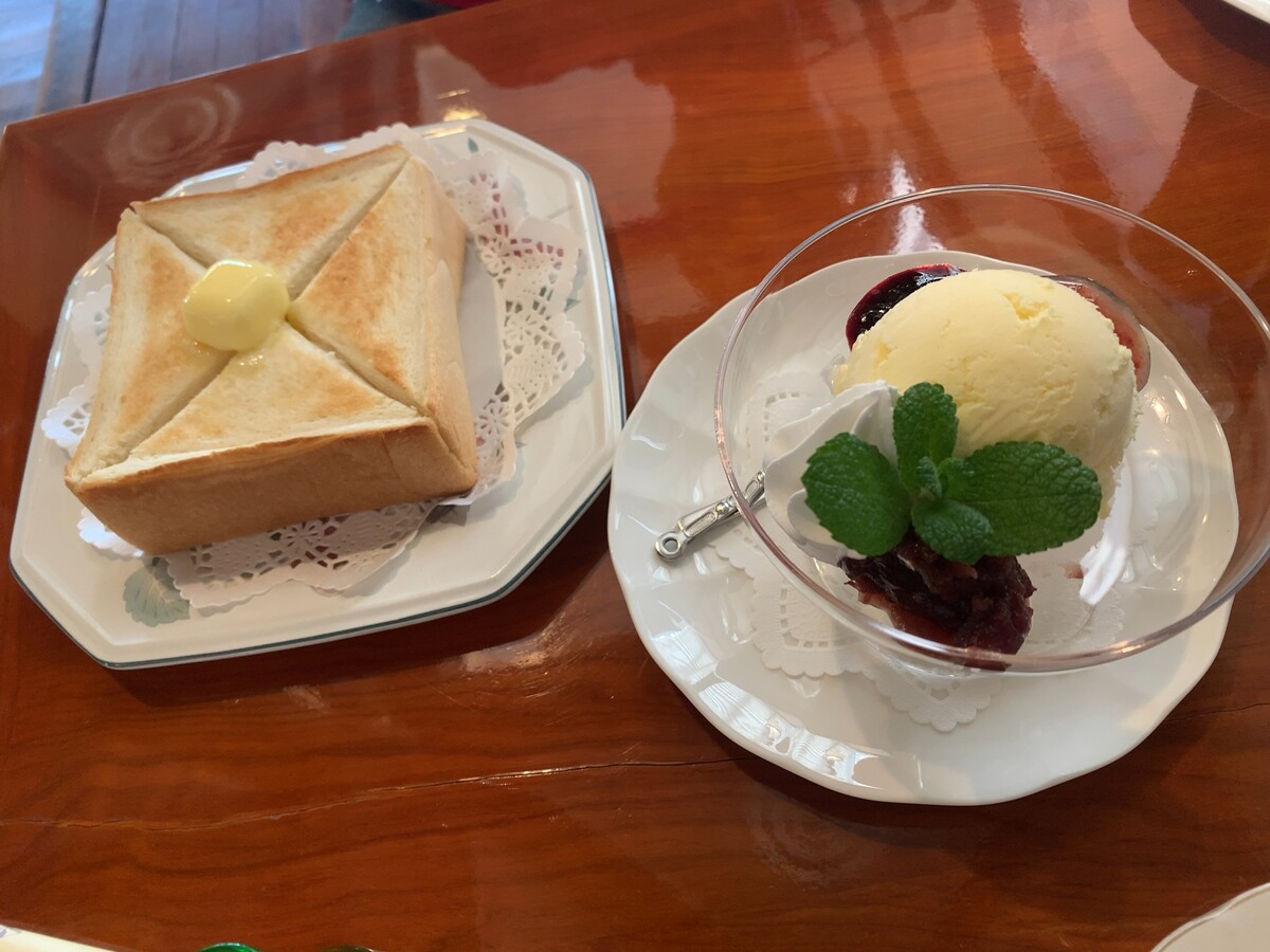 夫は厚切りトースト。アイスついてくるんですよ、スゴイですね。