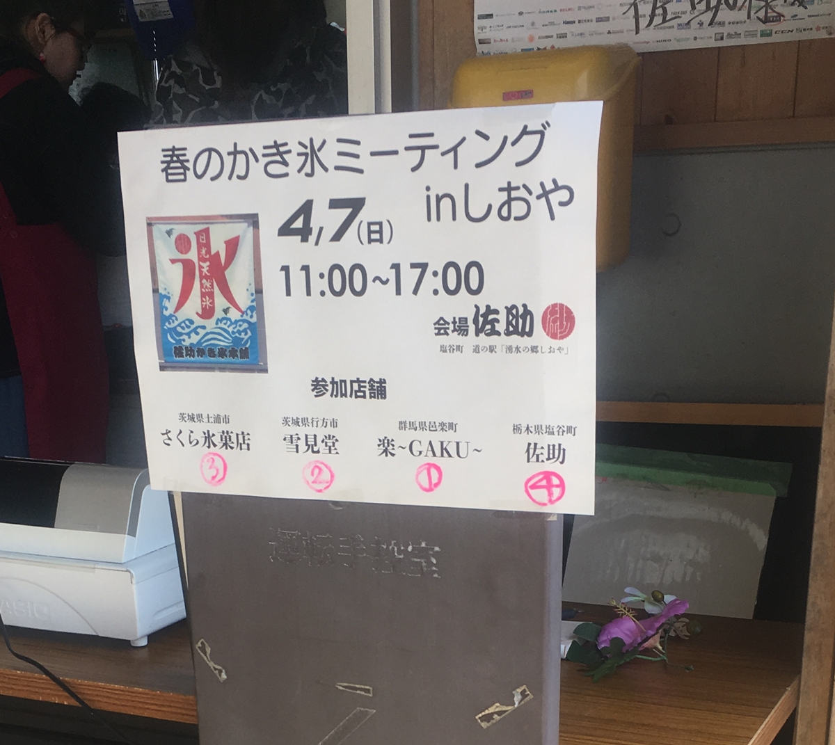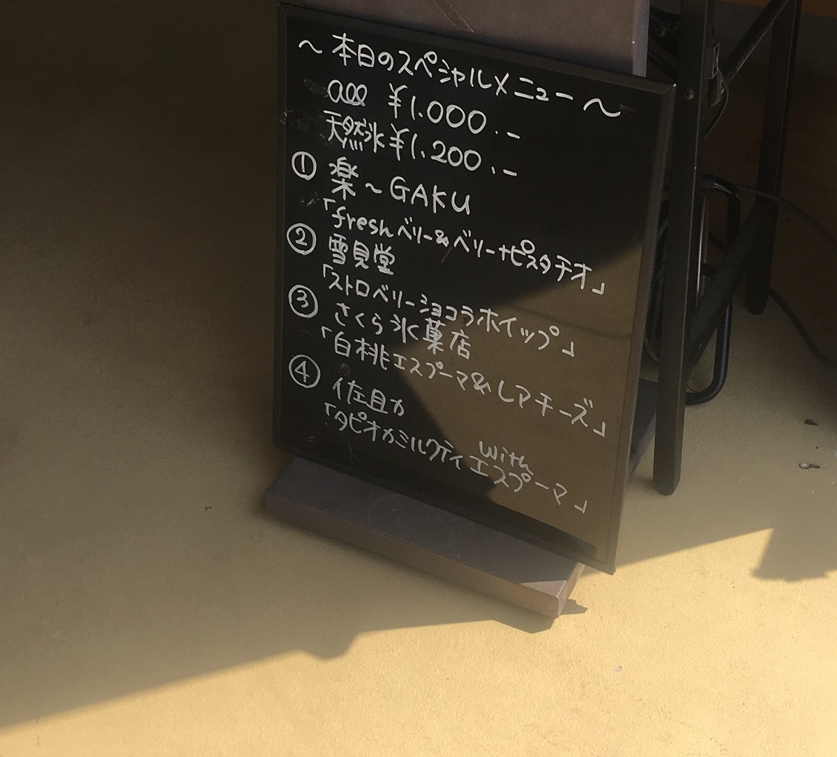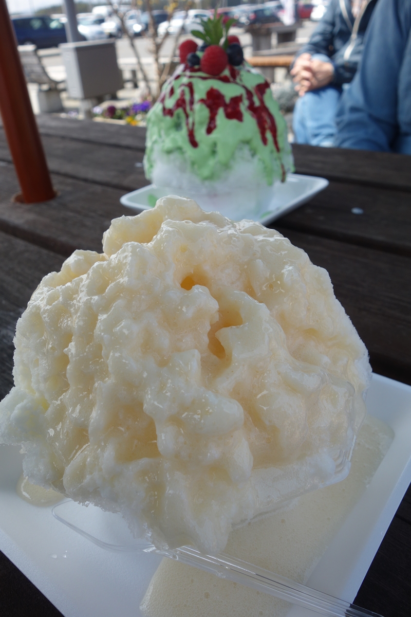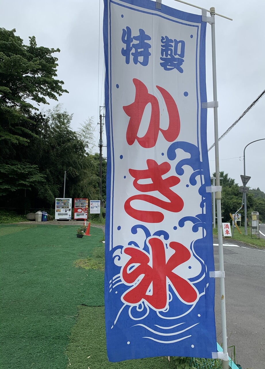 下山したら、目の前に「かき氷」のノボリ旗が。