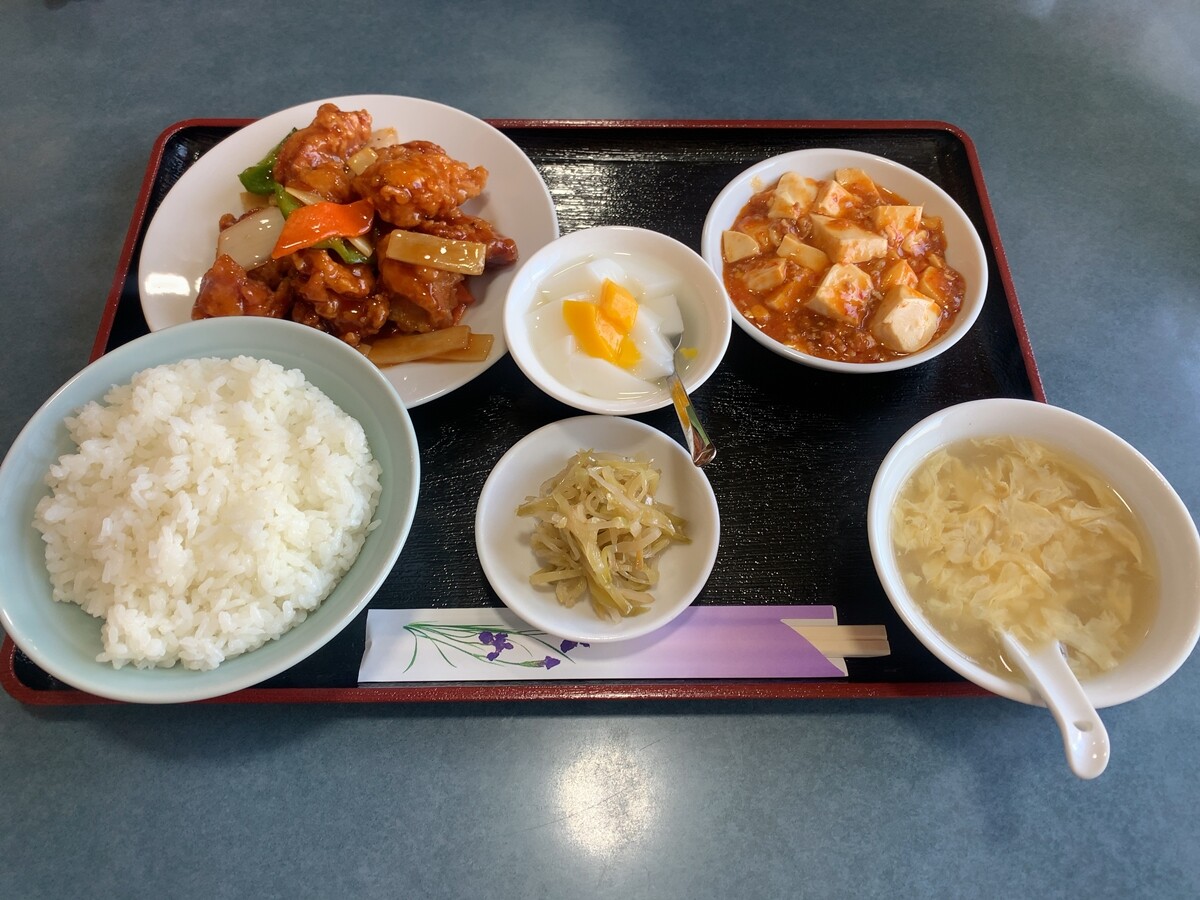 夫は酢豚定食。