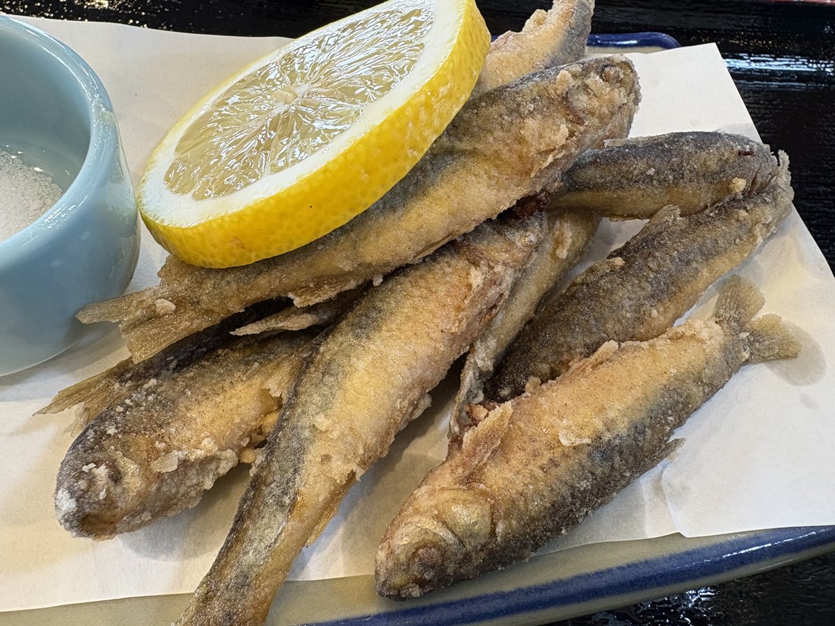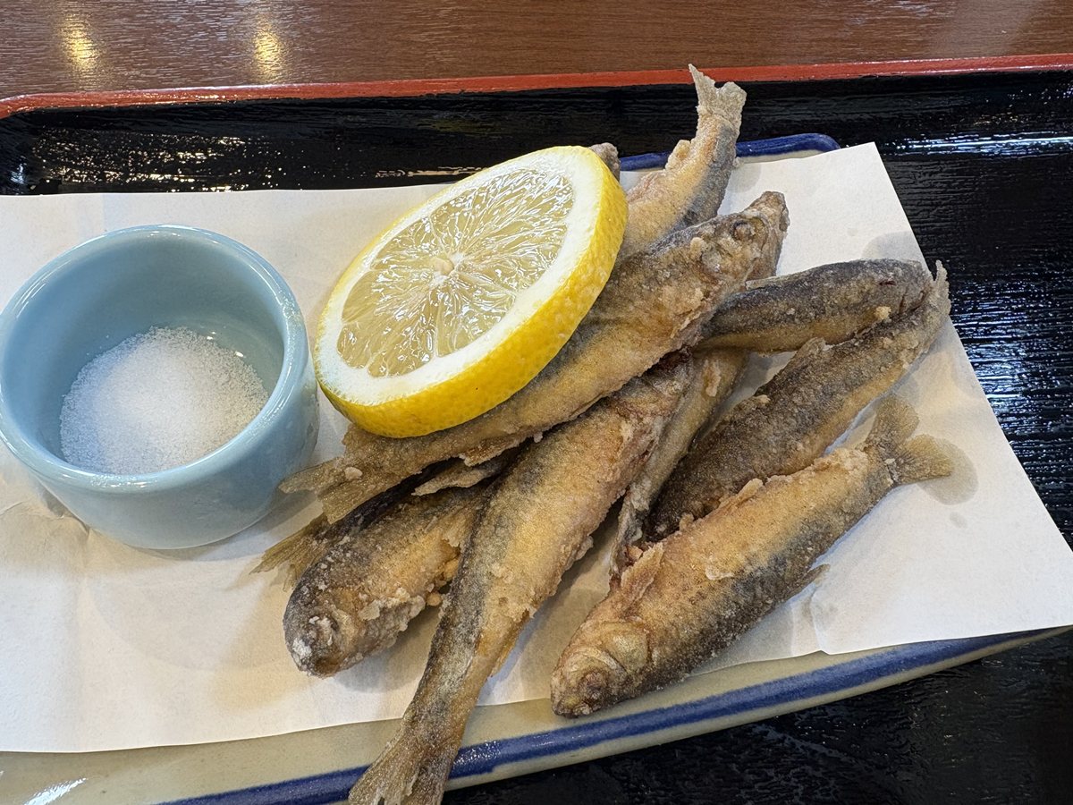 ミニそば(400円)と、単品で「ホンモロコ」の唐揚げ(500円)。