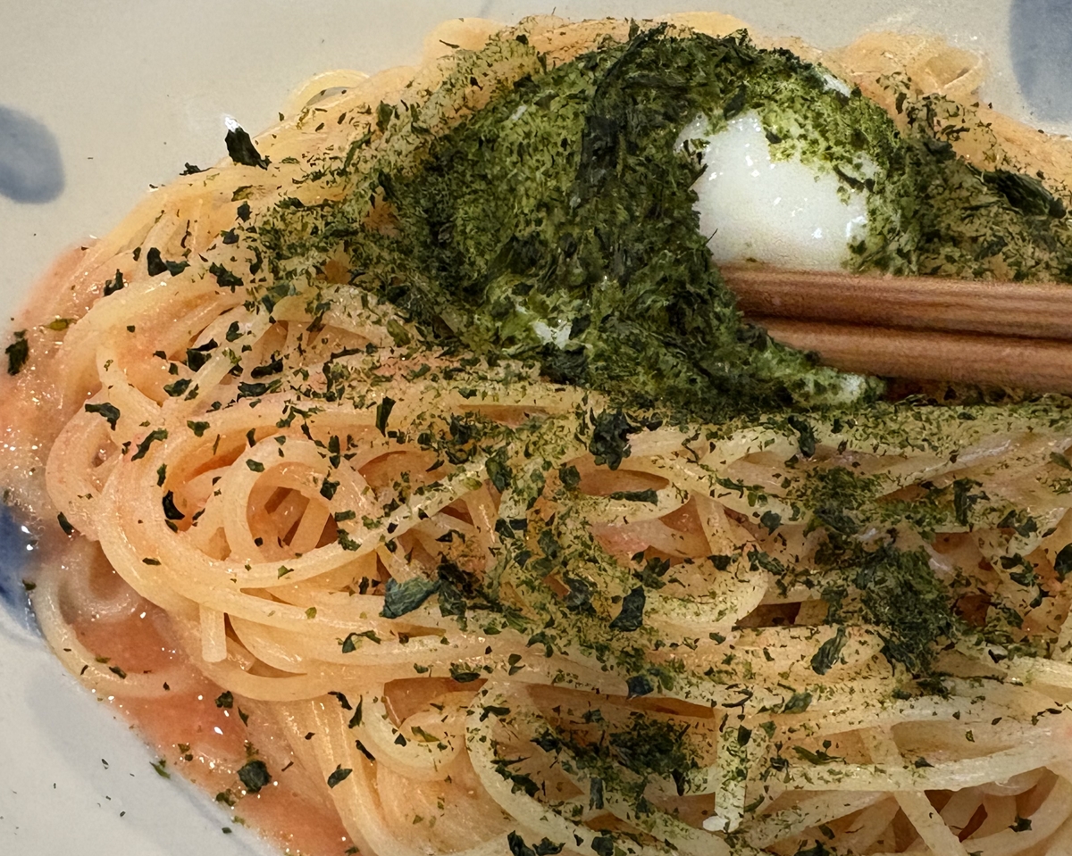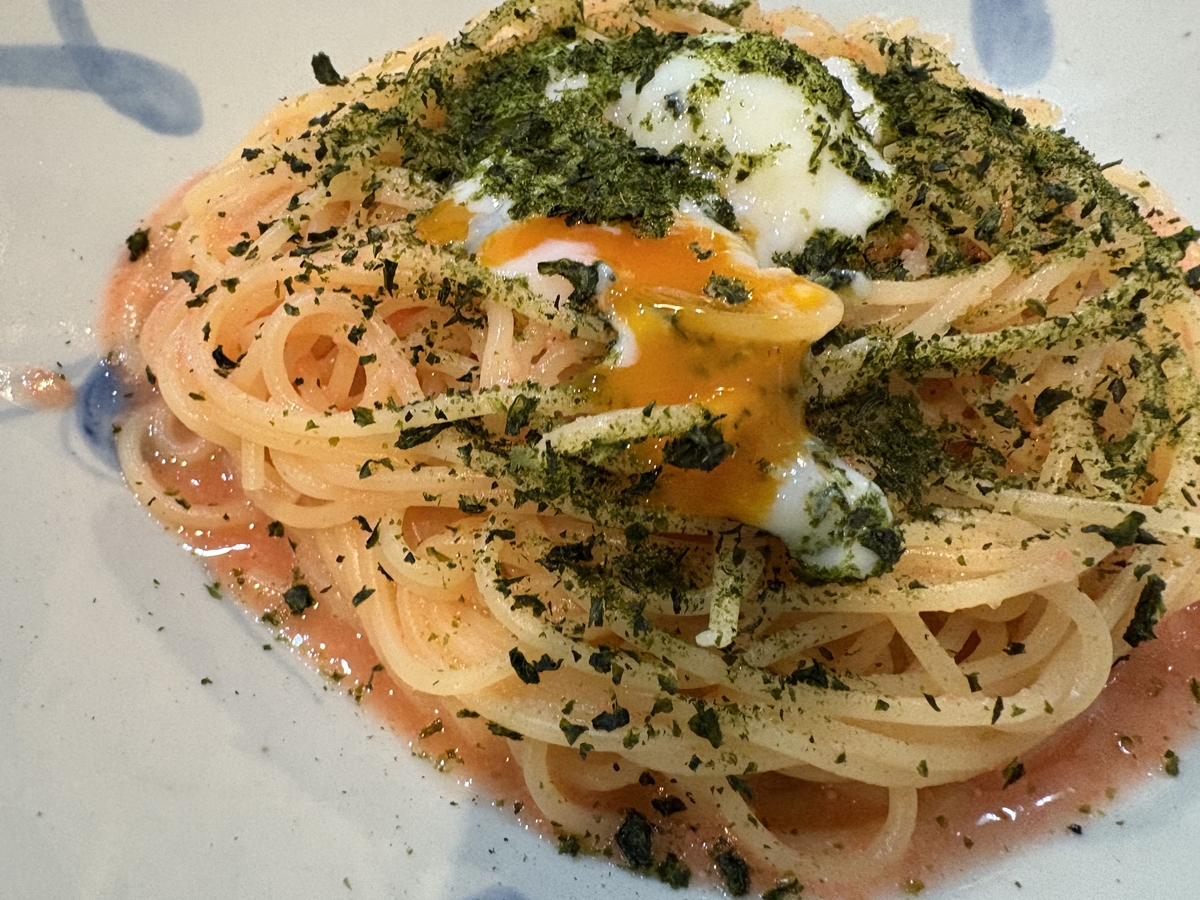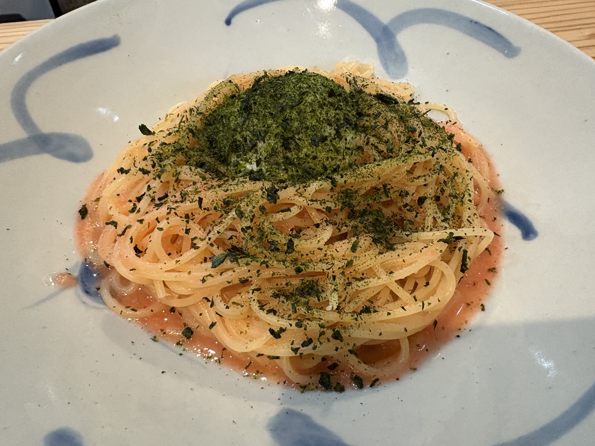 大人気の「新物あおさの月見明太子」パスタが該当するそうです。私はそれに。
