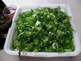 テーブルの上には大量のネギ。