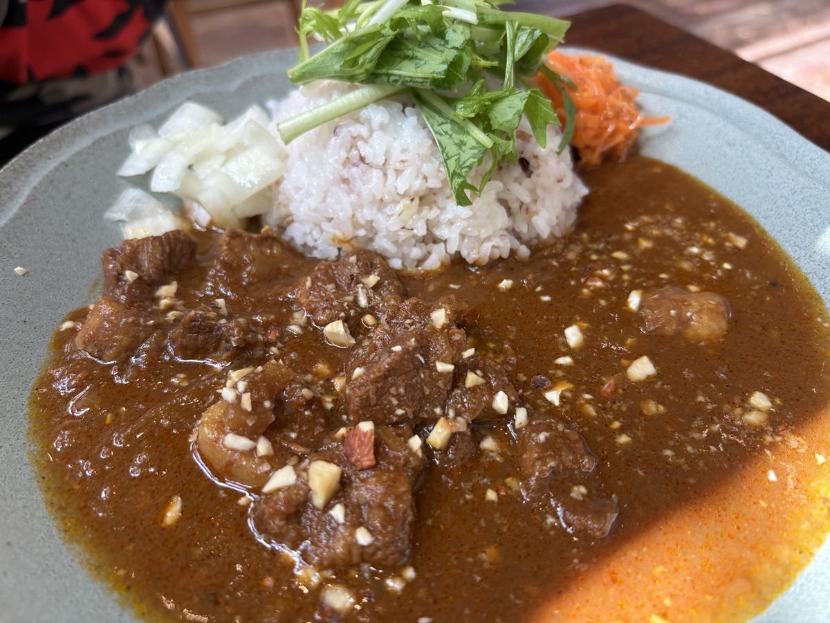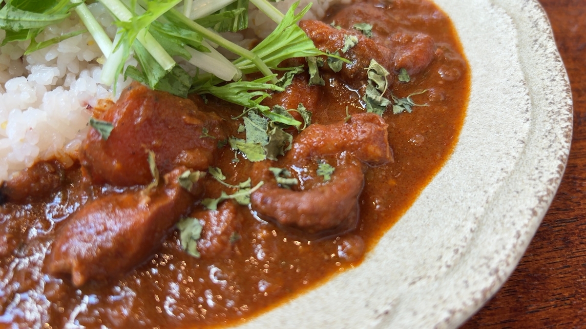 酸味と甘みを感じる、複雑~~~~な味のカレーでした。