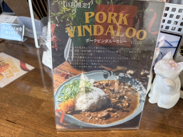 夫はポークビンダルーカレーとアイスコーヒー。