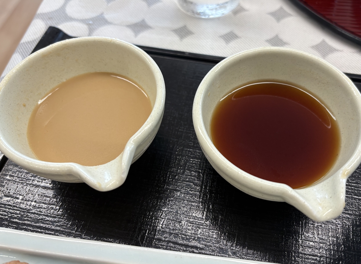 先に醤油ダレをかけ、ゴマダレは味変であとからかけてくださいとのこと。