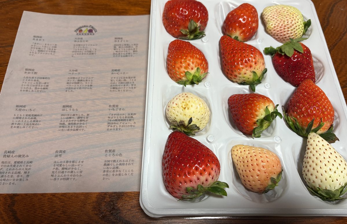 16品種のときに比べて白いちごが増えたような。時代というかトレンドでしょうか。