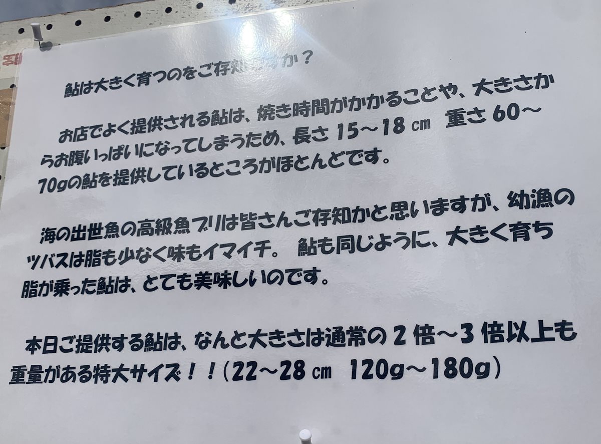10匹分が一気に口に入ってきたような鮎の塩焼きが食べられるのだそうな…。