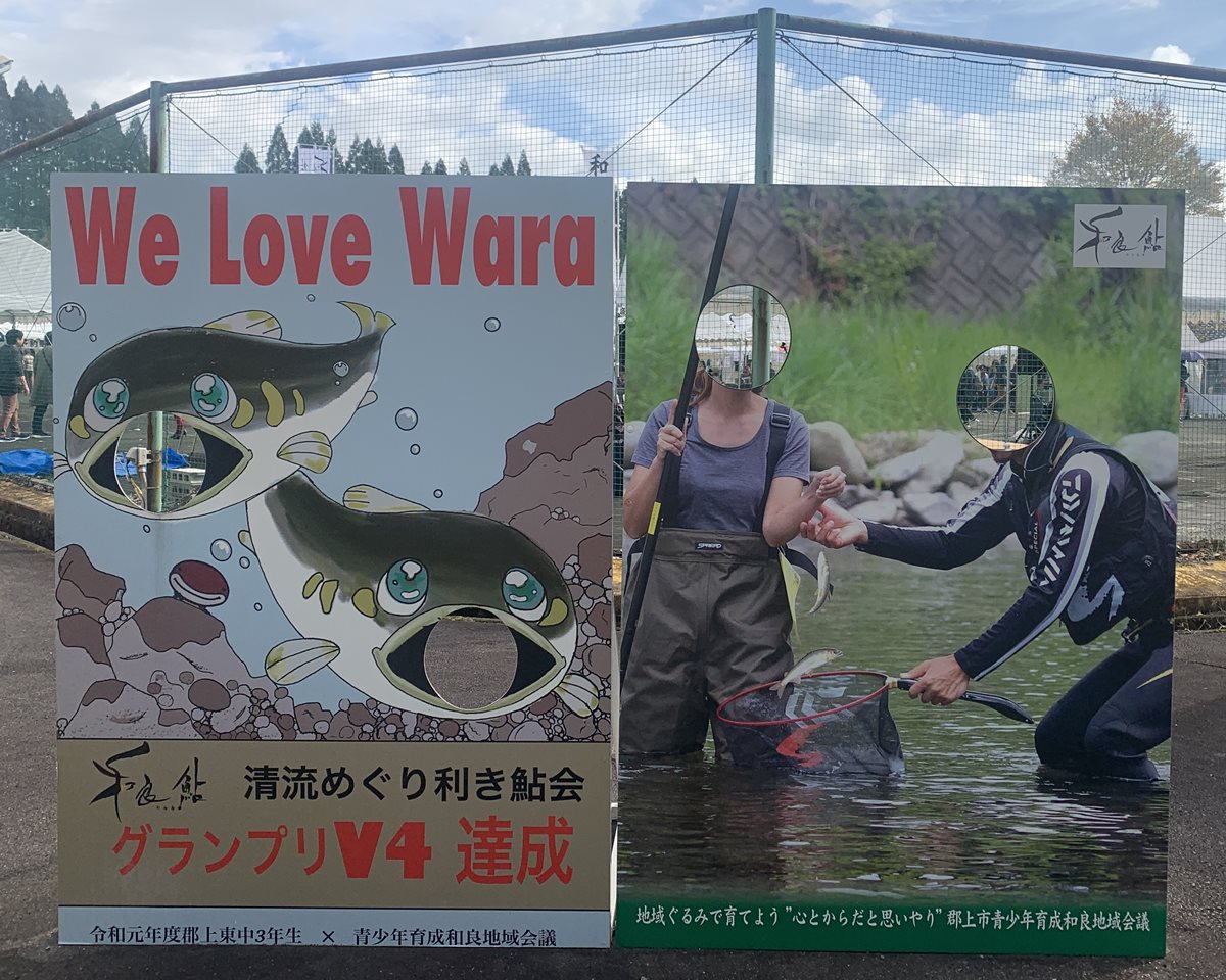 道の駅和良での「和良鮎まつり」鮎の塩焼きコーナーを見ています。