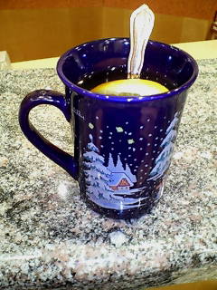 オレンジ風味のホットワインにレモンが入ってまして美味しい~~~~。