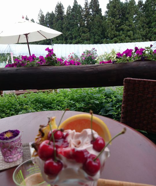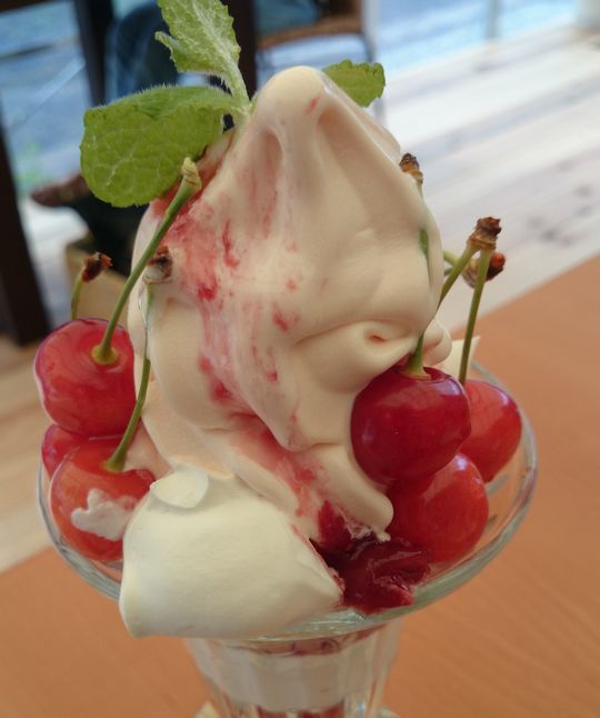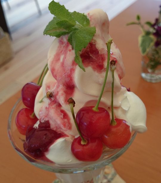 さくらんぼ園を見ながら食べるのが、さらに甘みを増す気がいたします。
